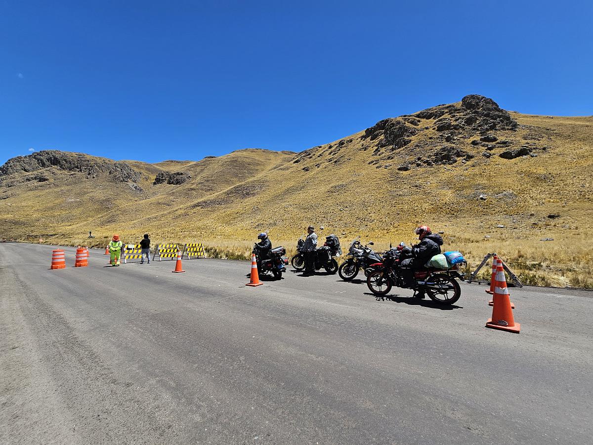 Da es kein Frühstück in unserer Unterkunft gab, fuhren wir zuerst zu einem Cafe. Hier bestellten wir uns jeweils einen Cappuccino und eine Zimtschnecke zum Teilen. Micha hatte etwas Probleme mit seiner Verdauung, deshalb war er vorsichtig mit der Menge. Danach ging es zum Tanken, somit konnten wir durchstarten nach Huancayo. Das lag 259km und 5h 10 min. entfernt von Oxapampa. Es hatte die ganze Nacht geregnet. Wir machten uns einige Gedanken darüber wie wohl die Senkungen und Schottereinlagen für heute aussehen werden. Und wir machten uns Sorgen ob nicht die Straße gesperrt ist, wegen Erdrutsche. Wir hatten Glück und es gab nur eine Stelle an der aufgeräumt werden musste. Hier warteten wir nur 3min. und es ging schon weiter. Die Straßen waren bereits abgetrocknet und wir kamen gut voran. Bei warmem Wetter mit 28°C waren wir vormittags unterwegs, danach ging es auf auf 4220üNN und die Temperatur fiel auf 12°C. In Huancayo auf 3330üNN hatten wir 20°C.