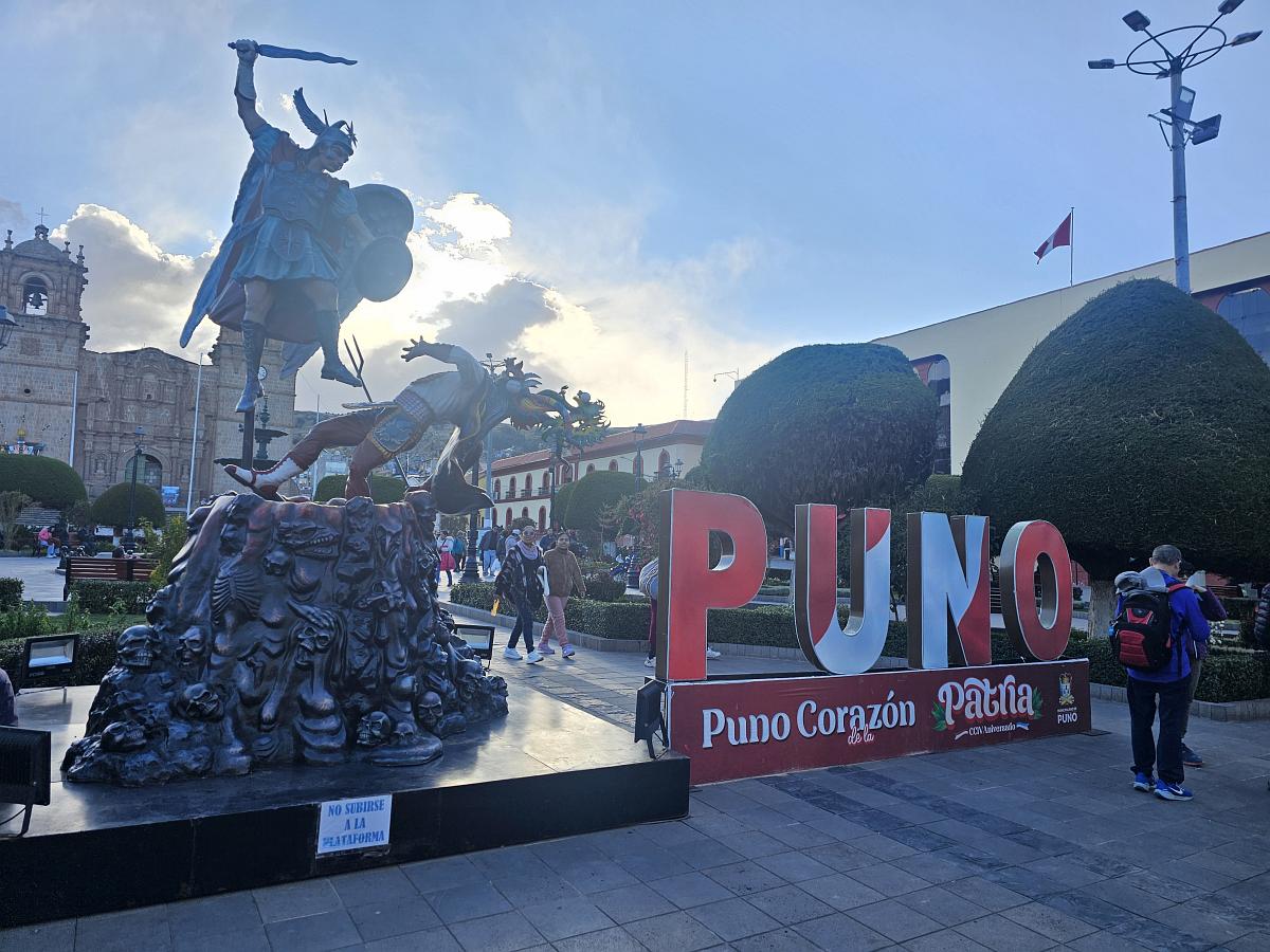 Es ging wieder ein Stück weiter. Heute sind wir in Puno gelandet, das liegt am Titicaca See. Das schlimmste heute früh beim Start, war mal wieder die Stadtdurchfahrt, dafür benötigten wir fast 1,5h. Die Straße PE34A war sehr rumpelig und wir hatten auch starken Seitenwind. Dann hatten wir noch eine Baustelle, an der wir 1,5h haben warten müssen bis diese geöffnet wurde. Insgesamt hatten wir eine Fahrzeit von fast 5h für die Streckenlänge von 316km. Landschaftlich war es eigentlich sehr schön und erinnerte uns an die Highlands. Die Temperatur von 12°C hatten wir auf 4560üNN erhalten, die restliche Tagestemperatur überstieg nicht die 20°C. Unsere Unterkunft lag bei 3900üNN. Bei Ankunft hatten wir bereits 15 Uhr überschritten, dass bedeutete schnell umziehen und Essen gehen. Wir entschieden uns für eine Pizza, leider machen die hier wenig Tomatensauce drauf und zu viel Käse. Zum Glück hatten wir uns nur eine Pizza für zwei bestellt.