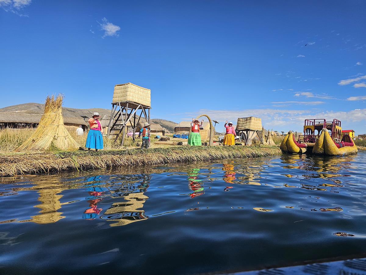 Ausflugtag in Punto....Es ging mit dem Schnellboot zu den schwimmenden Uros Schilfinseln, unsere Insel hieß Chumi. Es ist wirklich erstaunlich wie die ihre Inseln aufbauen und pflegen. Leider gibt es auch Nachteile wenn man auf so einer Insel immer lebt, den durch die immerwährende Feuchtigkeit bekommen die Menschen Rheuma. Wir durften noch eine 20 minütige extra Rundfahrt auf einem Schilfboot erleben. Danach ging es mit dem Schnellboot weiter zu der Insel Taquile, dort lebt das Volk Quechua. Einzigartig und seeehr interessant, die Insel ist richtig schön und die Menschen leben dort friedlich, ohne gesellschaftlichen Schichten. Ihre große Kunst ist hochwertige Textilien herzustellen und eine Attraktionen sind die strickenden Männer. Ausschließlich die Männer stricken und die Frauen weben. Als Zeichen ob ein Mann Singel ist oder verheiratet, dient die gestrickte Mütze. Ist die Mütze weiß/rot ist der Mann Singel und trägt er seinen Zipfel seitlich, ist er auf der Suche. Hängt der Zipfel nach hinten, dann hat er eine Freundin. Trägt der Mann eine rote Mütze, ist er verheiratet. Dann werden schwarze Haare ab dem 11 Lebensjahr der Frau/Mädchen (immer wieder abgeschnitten und aufgehoben), diese werden mit weißer Alpaka Wolle zu einem breiten Gürtel gewoben, das erhalten die Männer bei der Heirat geschenkt von ihrer Frau. Und die Haare der Frau werden zu Extensions verarbeitet, diese werden an ihrem Ehemann angebracht. Die Frauen erhalten ab dem 4 Lebensjahr einen Knochen von einem Alpaka, mit diesem machen sie alles, auch weben. Auch die Frauen tragen je nach Stand entsprechend bunte Kleidung. Wir durften noch einen traditionellen Tanz bestaunen, danach ging es zum Essen. Die Quinoa Suppe, die Forelle und der Tee waren sehr lecker. Anschließend gingen wir zu unserem Schnellboot, dass brachte uns zurück nach Puno. Micha hatte noch etwas Hunger und so liefen wir zur Pizzeria. Wir beide hatten uns einen Sonnenbrand im Gesicht eingefangen.
